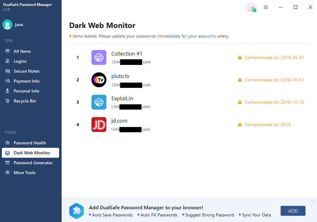DualSafe Password Manager is simple to use and has outstanding overall functionality. I had trouble setting up my account, and the support personnel patiently and fully helped me. Other products do not provide the same level of attention and promptness in responding.